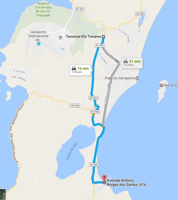 de Integração do Rio Tavares. Deslocamento estimado em 1 hora.